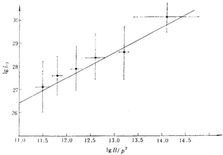 射电光度和参数 有很好的演化关系,如图(10.8)所示。