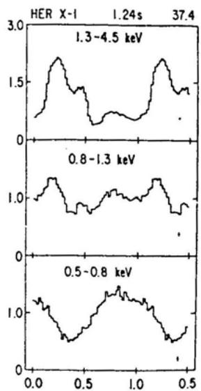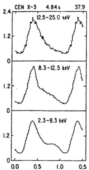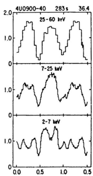 图(9.3)是Cen X-3(半人马座 X-3),4U 0900-40 和Her X-1(武仙座 X-1)的X射