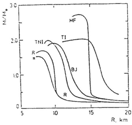尽管不同模型的关系曲线不同,但总的规律是一样的。质量大的中子星,半径小,密度大。质量小的中子星,半径大,密度小。对于一个质量为一个太阳质量的中子星,其半径约为10公里。